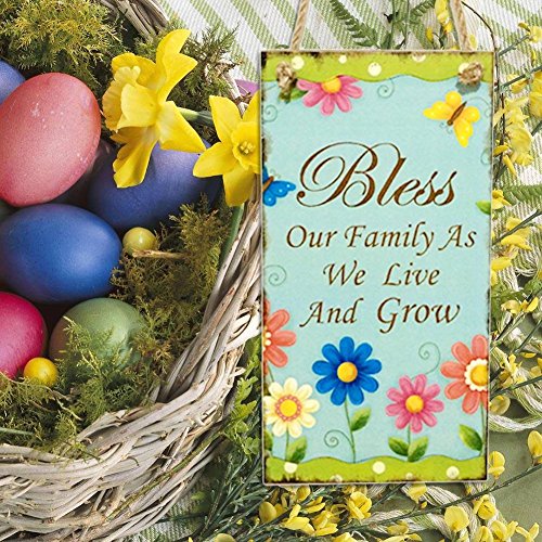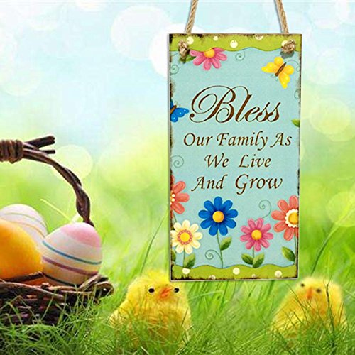 イースター木製吊り下げボード、awakingdemi Bless SignイースターHangingボード花ドアハンガーPlaque壁装飾