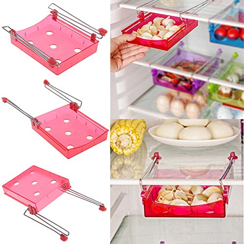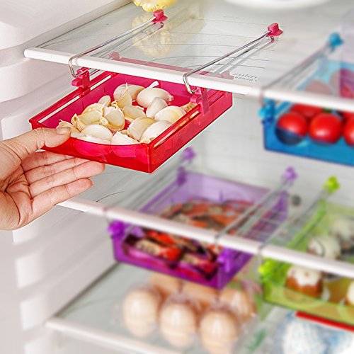 awakingdemi冷蔵庫引き出しオーガナイザー、ミニキッチン冷蔵庫冷凍庫引き出しシェルフアタッチストレージボックスビン冷蔵庫用(ブルー)