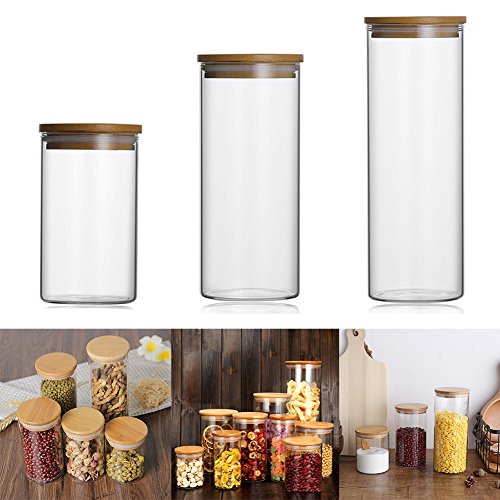 AWHAO密封ガラスびん 密封ガラス保存容器 密封びん 透明ガラス保存容器 木製蓋 高温低温耐性 (L)
