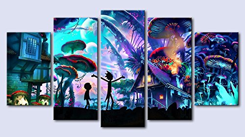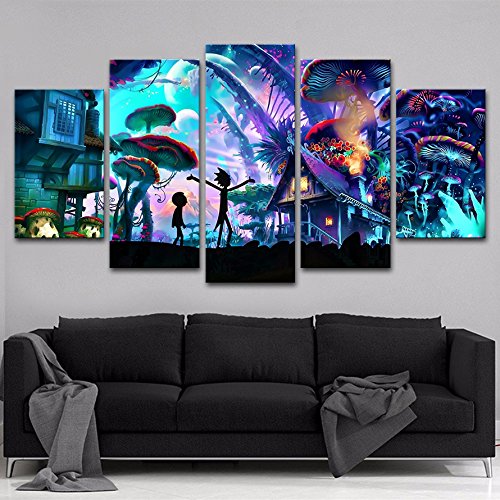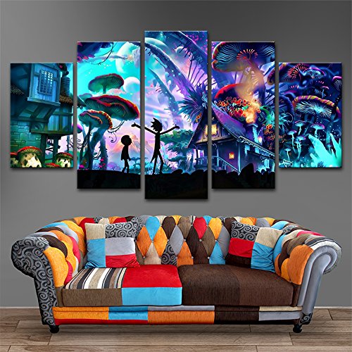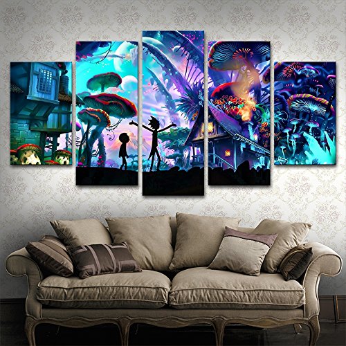 5パネルキャンバス画Shroom World Rick and Morty壁アートペイント