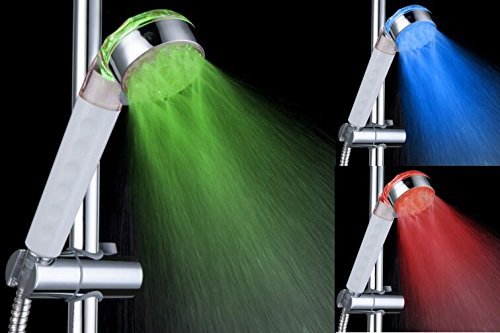 - 【LEDシャワーヘッド、温度によってLEDが3色に変化する】電源電池不要、LED内蔵の 水圧発電のシャワーヘッドです、温度によって変色する、水温31℃以下はLEDカラー はグリーンになり、水温は32−43℃の間にLEDカラーはブルーになり、水温は44−50℃の間にLEDカラーはレッドになり、水温は51℃以上になるとLEDカラー はレッドがちらちらします、この時は水温が高すぎることを注意してください。