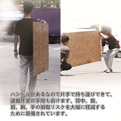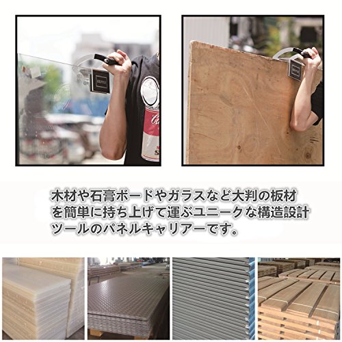 - 大型パネル運搬用ツールです。木や石膏ボードなど大判の板材を簡単に持ち上げて運ぶユニークな構造設計ツールのパネルキャリアーです。