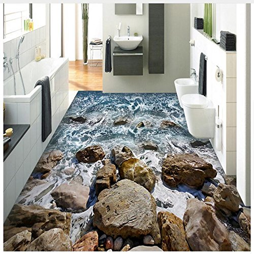 3d壁紙3dフローリング床PVC壁画壁紙Seaside Sea Waves StonesリビングルームベッドルームバスルームPVC防水床ウォール壁紙ホームデコレーション、ayzr qasa697632027