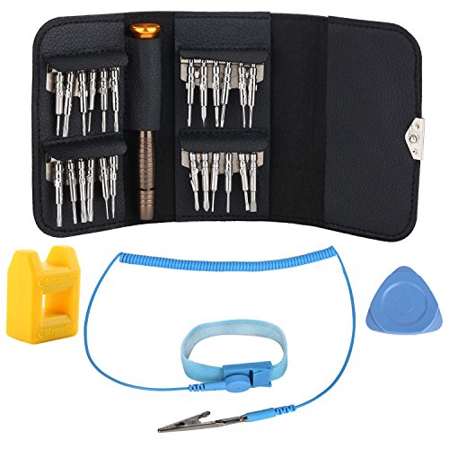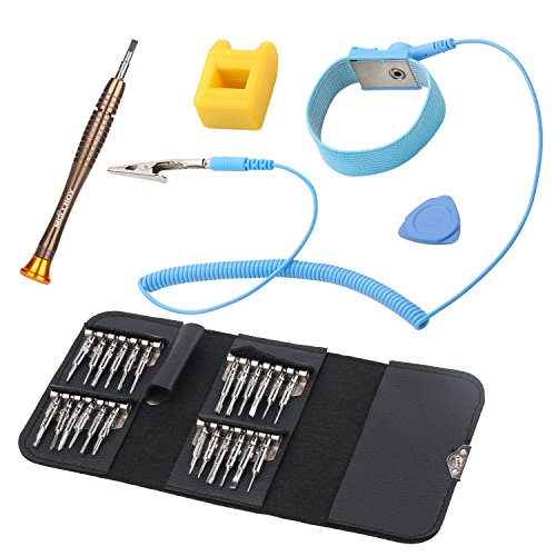 AzaRiko NEW 28 in1多機能 航空宇宙合金材料 精密ドライバーセット 24ビット磁化消磁リングタブレット 静電気除去リストバンド PC ノートパソコン 眼鏡修理 三角オープナー(無料) (28in1)