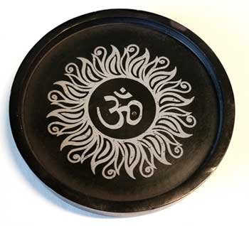 Beautiful, solid om soapstone coaster for your drink wares, change, trinkets, incense, cone holder, decoration, it also bears a hold for a incense holder, multi uses for this attractive piece with a symbolic meaning. Made of natural stone with natural perfections and imperfections.