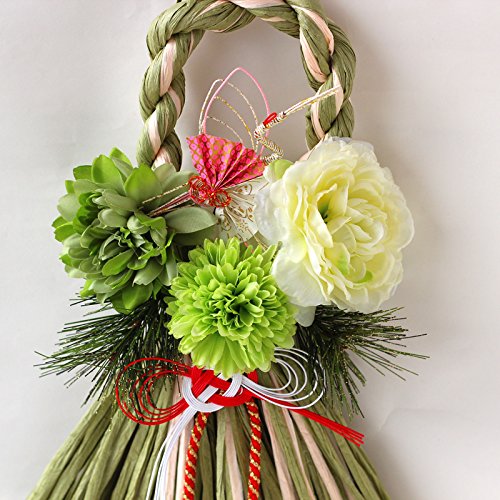- 【アーティフィシャルフラワー造花】緑ダリア、ラナンキュラス、グリーンマム、松 【その他】源氏紐、水引鶴、グリーンクリームーペーパーわらしめ縄