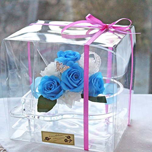 Azurosa(アズローザ) プリザーブドフラワー ギフト ピアノ ブーケ 青バラ アジサイ ヘデラ クリアxブルー