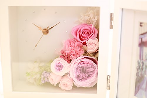 Azurosa(アズローザ) フォトフレーム プリザーブドフラワー 時計 ギフト グラデーションオールドローズ アジサイ グラデーションカーネーション ピンク