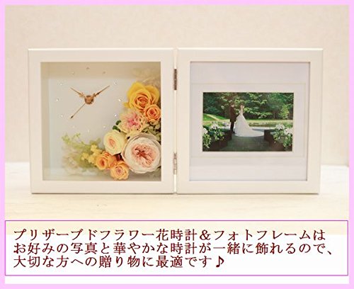 Azurosa(アズローザ) フォトフレーム プリザーブドフラワー 時計 ギフト グラデーションオールドローズ アジサイ グラデーションカーネーション ピーチ