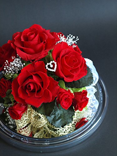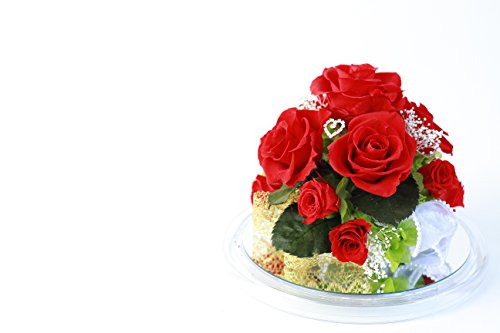 Azurosa(アズローザ) プリザーブドフラワー オルゴール プレゼント ギフト バラ アジサイ カスミ草 ローズリーフ ラウンドミラードームL レッド