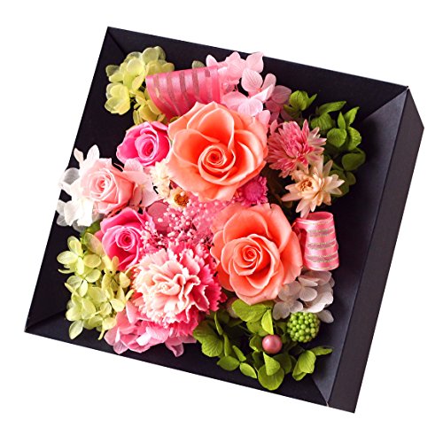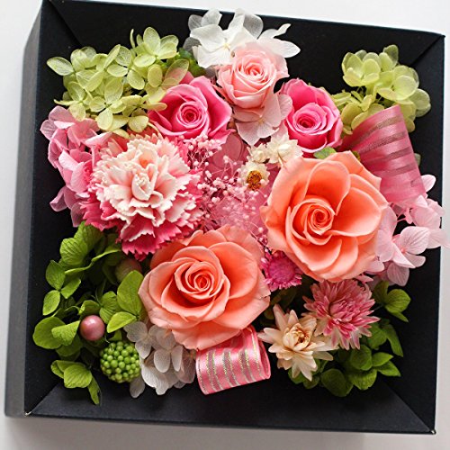 Azurosa(アズローザ) プリザーブドフラワー ギフト 枯れない花 ギフト ボックス バラ アジサイ カスミソウ ピーチ