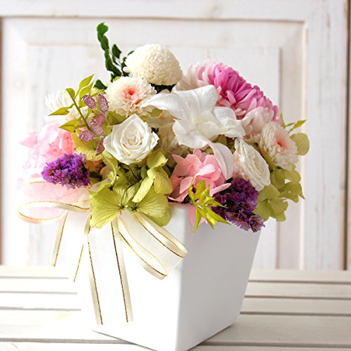 Azurosa(アズローザ) プリザーブドフラワー 仏花 ギフト 枯れない花 輪菊 蘭 アジサイ ムミルフィーユ スターチス ラスカス シルバーデージー アジアンタム シャーロット
