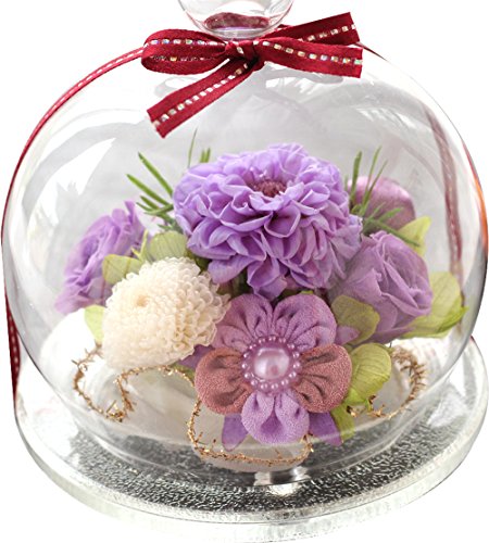 Azurosa(アズローザ) プリザーブドフラワー ギフト枯れない花 ダリア ピンポンマム バラ アジサイ アスパラガススプリンゲリー 和風 ガラスドーム 京紫
