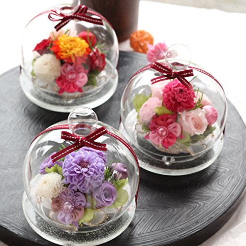- まんまるキュートな手のひらサイズのガラスドームに、本物のプリザーブドフラワーだけを使った高級感あるクリアガラスドームは大切な方への贈り物に最適!人気のプリザーブドフラワー和風。