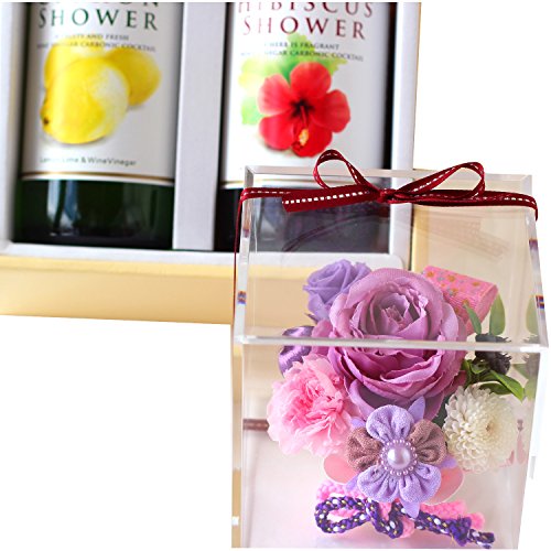 【セット品】Azurosa(アズローザ) プリザーブドフラワー3点セット (プリザーブドフラワー、ワインヴィネガーシトロンソーダ、ワインヴィネガーハイビスカスソーダ)