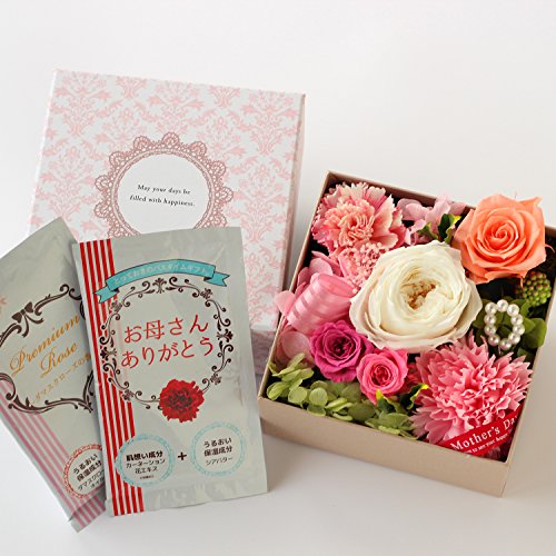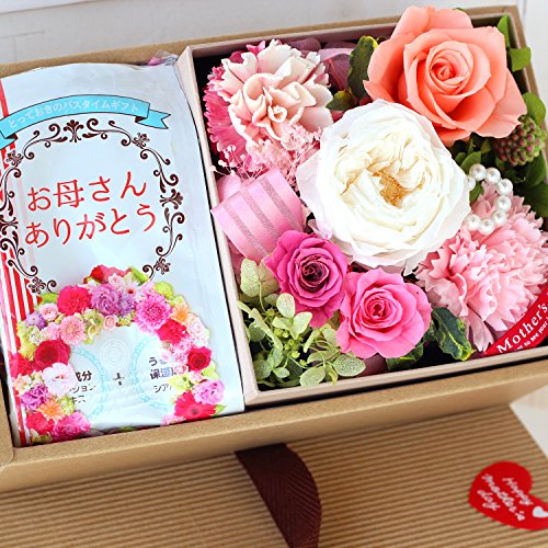 Azurosa(アズローザ) プリザーブドフラワー ギフト BOX ナチュラルオールドローズ フレグランスソープカーネーション オレンジ [カーネーション、バラの入浴剤セット] 【母の日ギフト】