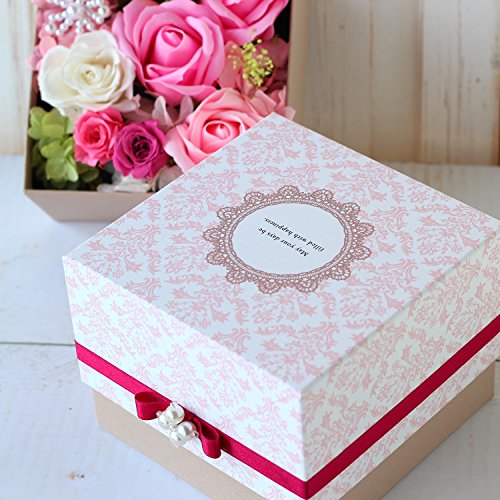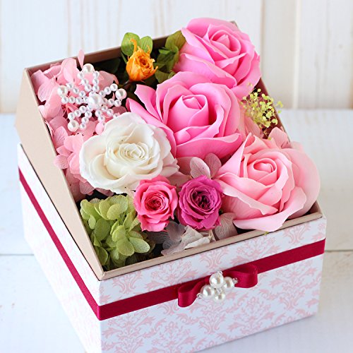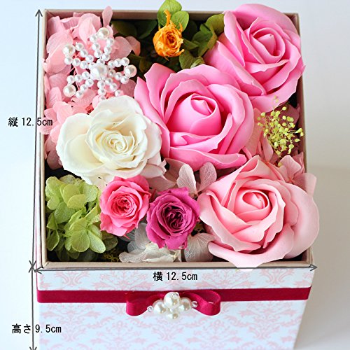 Azurosa(アズローザ) プリザーブドフラワー ギフト ボックス スクエア 枯れない花 フレグランスソープ ローズ ピンクミックス