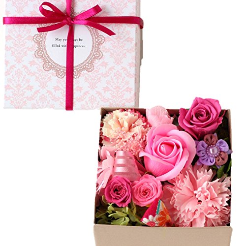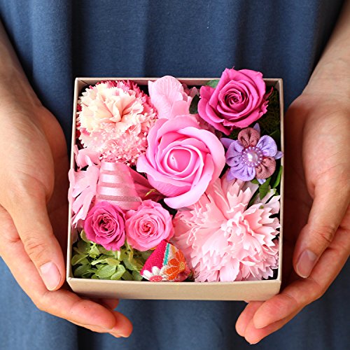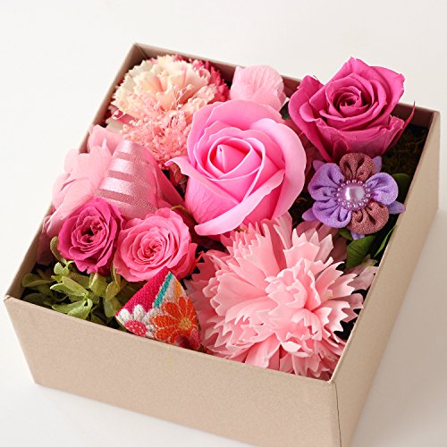 Azurosa(アズローザ) プリザーブドフラワー ギフト 和 BOX バラ フレグランスソープカーネーション (ピンク)