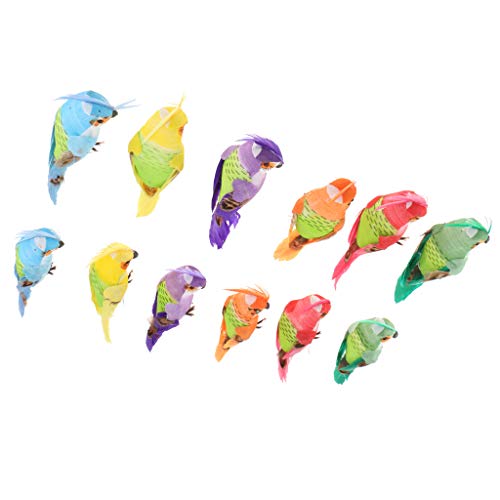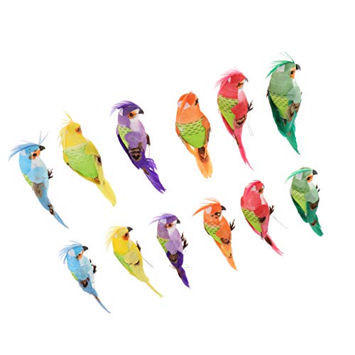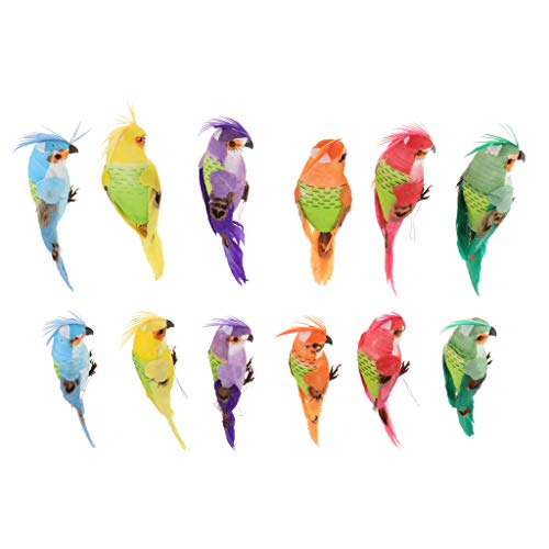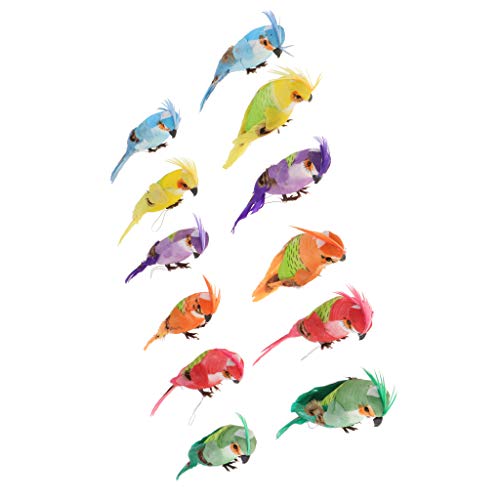 B Baosity かわいい オウムの置物 動物 フォーム 人工羽根 生き生き 12本入り 芝生装飾品