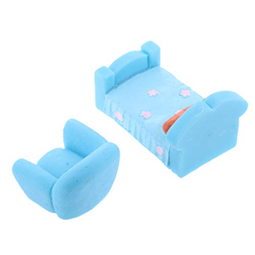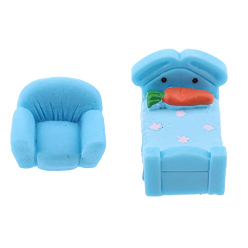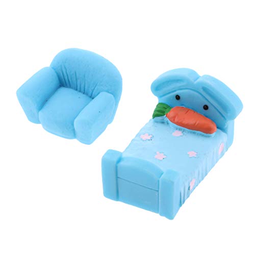 B Baosity ミニチュア ベッド ルーム家具 かわいい 植物園芸 小道具 全5色 ランドスケープ 装飾 - 青