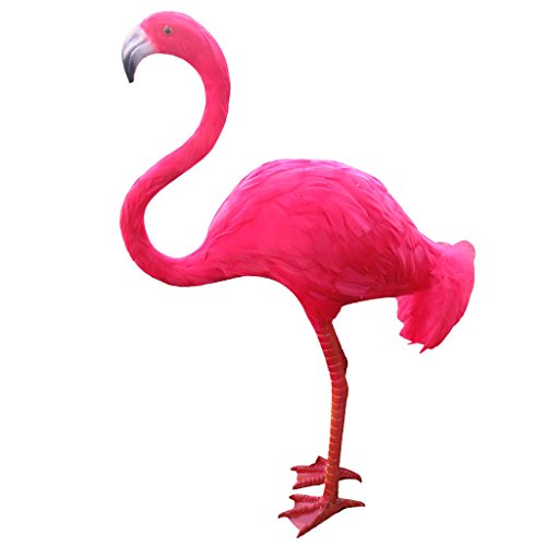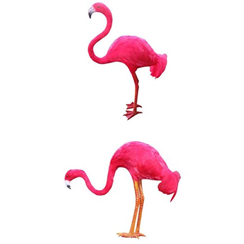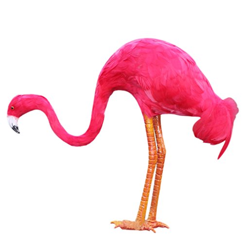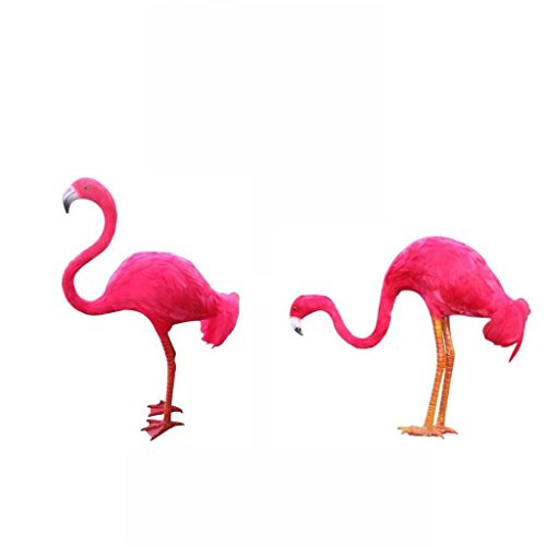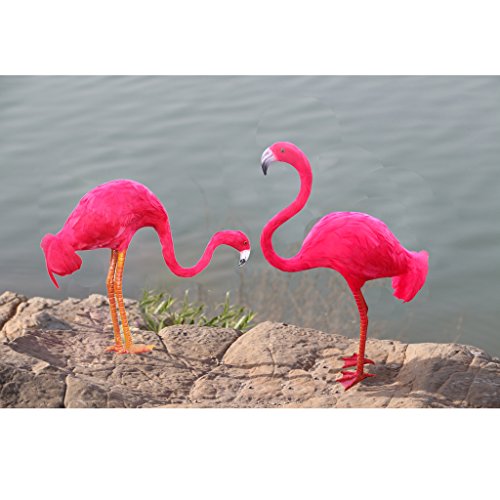 B Baosity 2個セット フラミンゴ 人工毛皮 置物 動物装飾 ガーデン 小道具 見上げ+見下ろす - ローズレッド