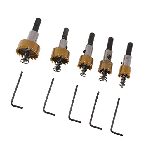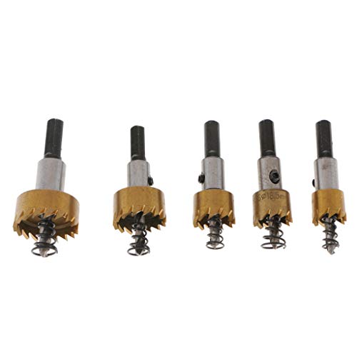 - チタンメッキ5ピース16ミリメートル - 30ミリメートル高速鋸歯状穿孔器M2アルミニウムプレート鉄板掘削ビットセット。