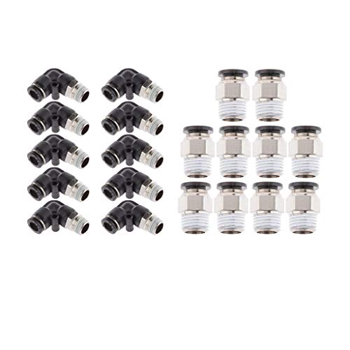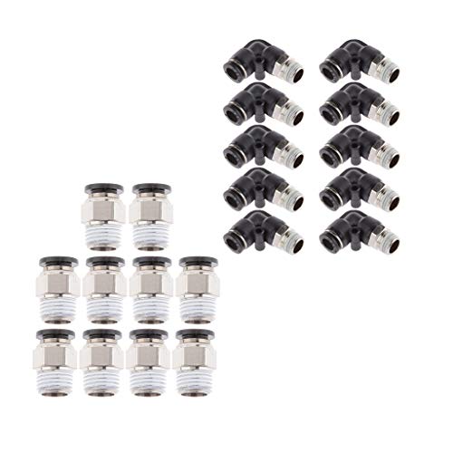 B Baosity 20個セット チューブ継手 外径8mm to 1/4 '' BSP エルボー+ストレート 空気圧コネクタ