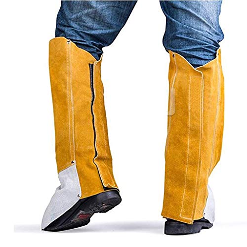 B Baosity 溶接用 耐火性 レギンス スパッツ シューズカバー 調節可能 レザー 鋼板内蔵