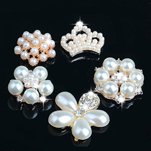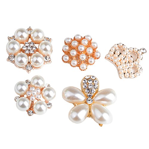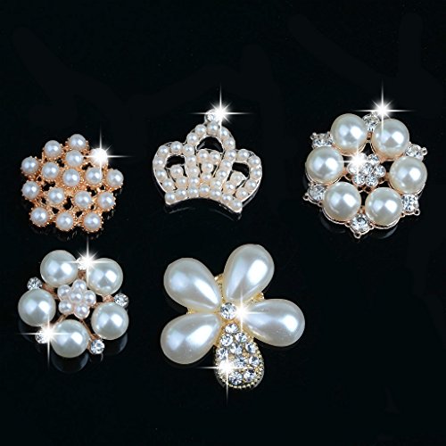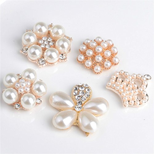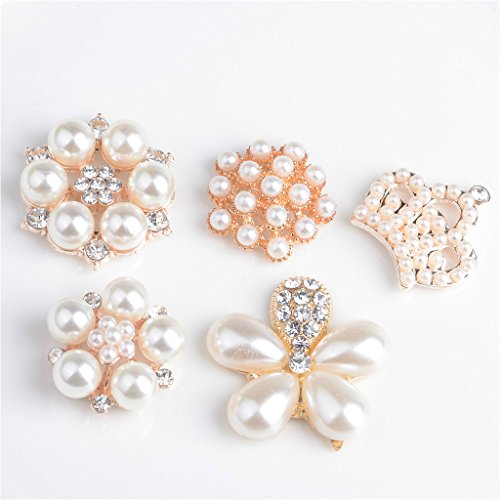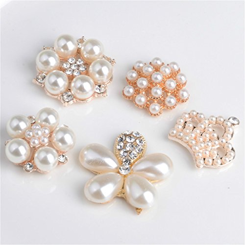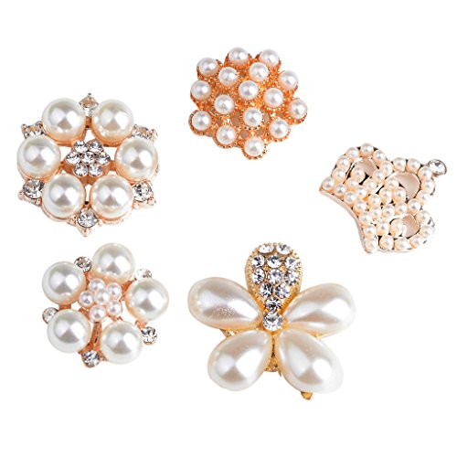- 5スタイル美しい真珠の花の形状フラットバックボタンのラインストーン装飾