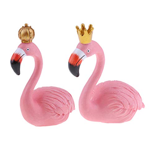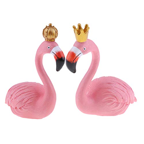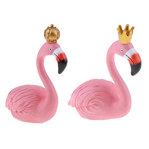 B Blesiya 2点セット フラミンゴ置物 キング&クイーン インテリア ガーデン 芝生 装飾品 樹脂 ピンク 贈り物 - L