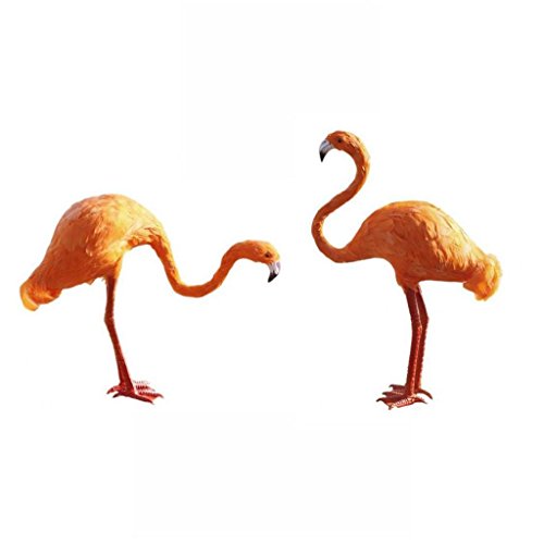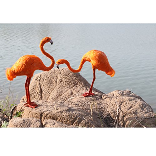 B Blesiya フラミンゴ 人工毛皮 芝生 庭 ガーデン 工芸品 小道具 装飾 2個 見上げ+見下ろす - オレンジ