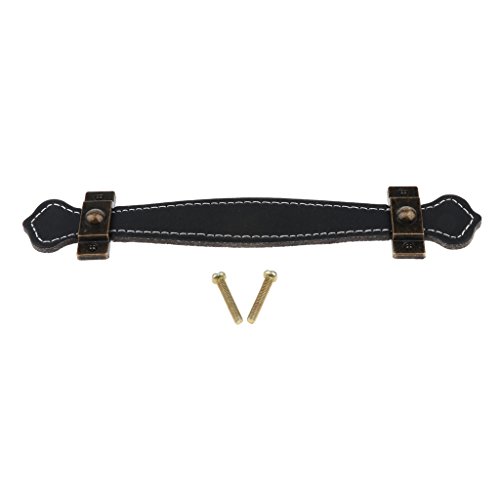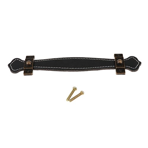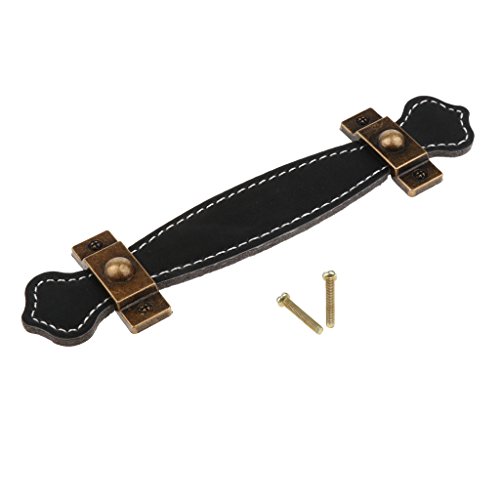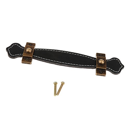 B Blesiya プルハンドル ヴィンテージ PU 引き出し ドア 家具 キャビネット スクリュー付き 全3サイズ 全2色 - 128mmブラック
