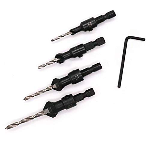 - HSSドリルビットセットには、スクリューサイズ#5、#6、#8、#10、#12、および1六角レンチ用の穴を開けるための4ビットが含まれています。