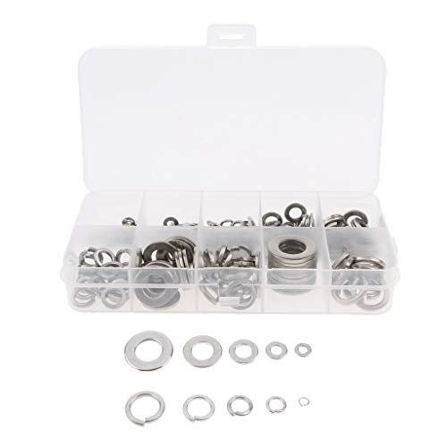 B Blesiya ステンレススチール フラット&スプリング ロックワッシャー キット 260個入り(m2.5-10) 耐錆性