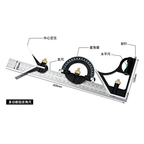 B Blesiya 多機能ルーラーキット 分度器ヘッド スピリットレベル 12インチ 角度定規 内外角度 測定ツール 0-180度