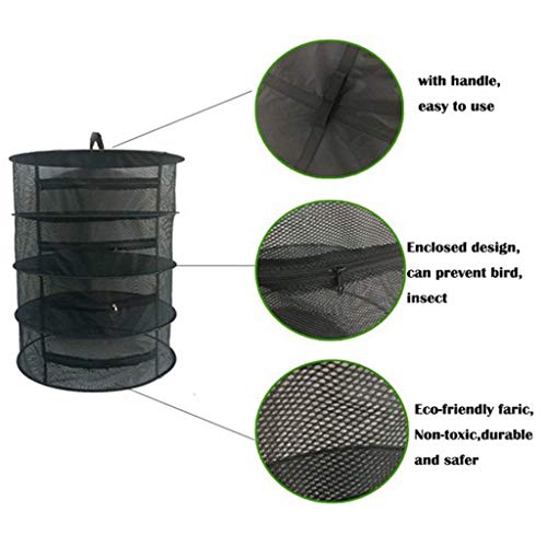 B Blesiya 乾燥ネット 防風バグ 昆虫 折りたたみ式 ハンギングラック ジッパー付 全3色2種 - 4層ブラック