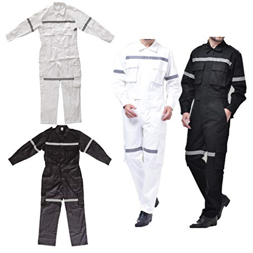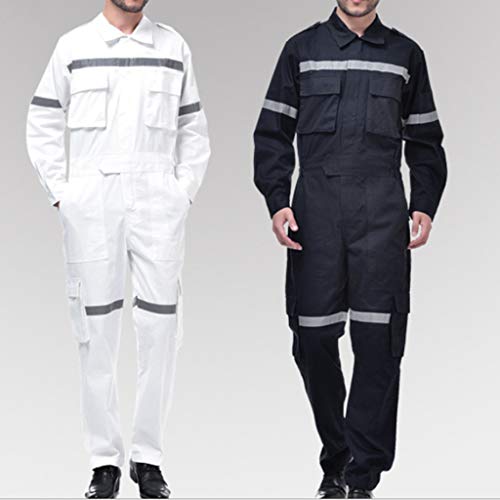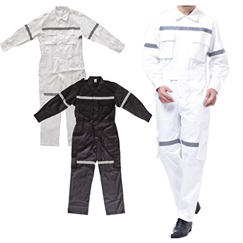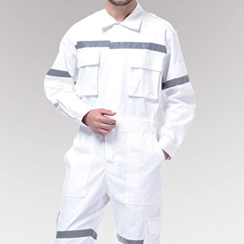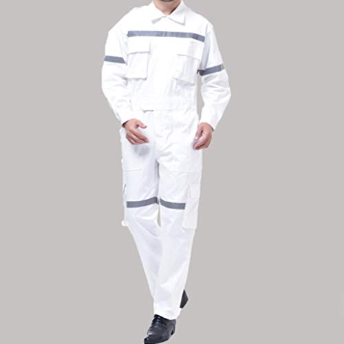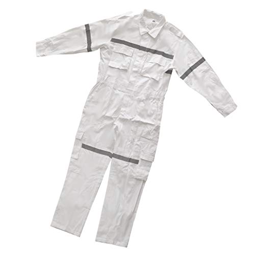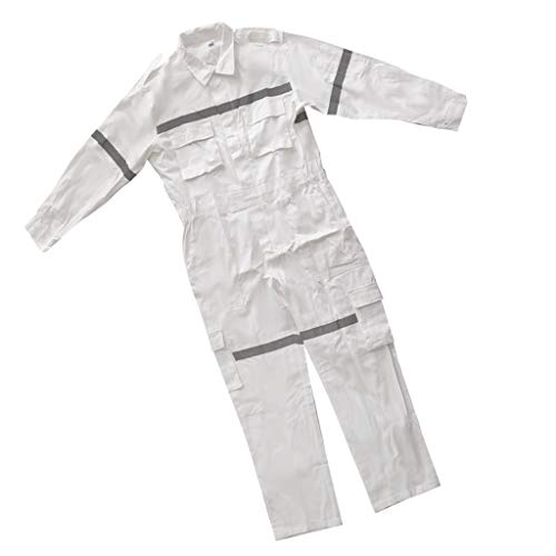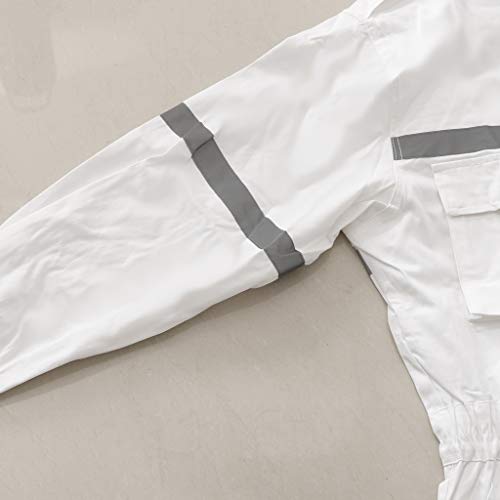 B Blesiya 修理 屋外 仕事 作業着 セーフティスーツ 安全ジャケット 防護服 連体 反射テープ付き ホワイト - XL