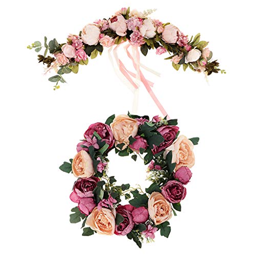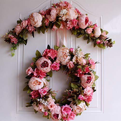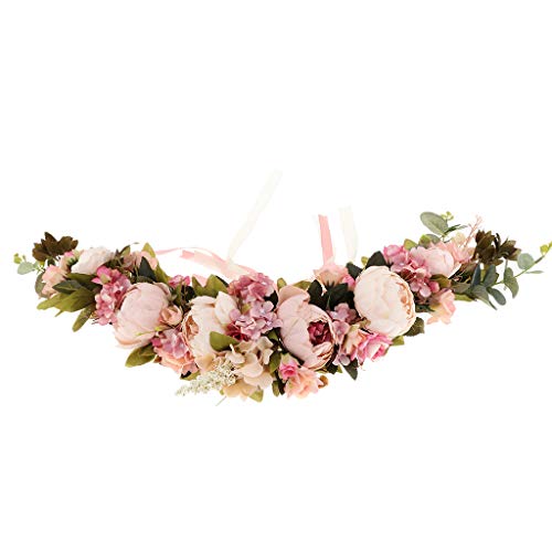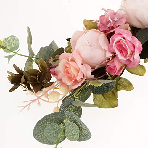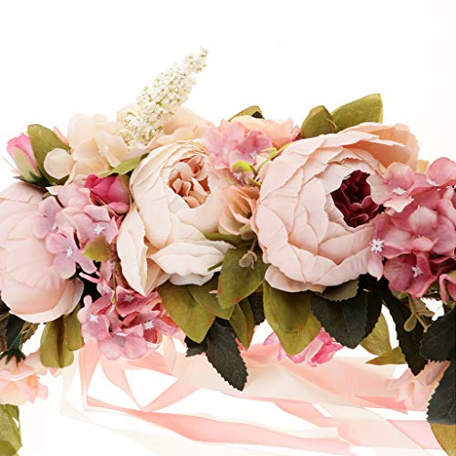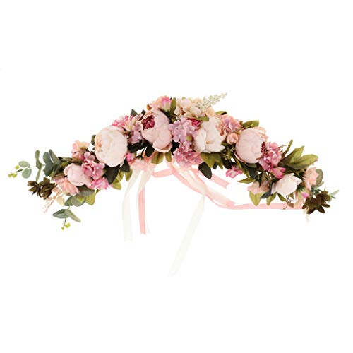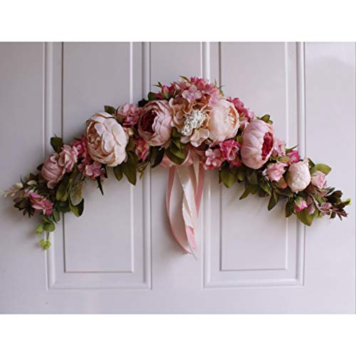 B Blesiya シルクフラワー 造花 人工葉 サテンリボン 花輪 結婚式 パーティー お祝い 飾り 5色選べ - ピンク
