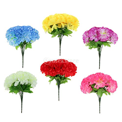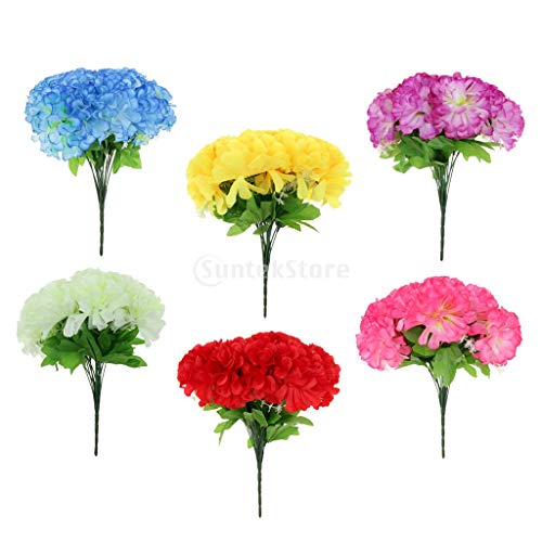 B Blesiya シルクフラワー 菊花 ブーケ 装飾 インテリア 6色選べ - 青
