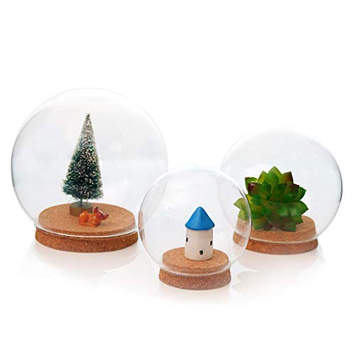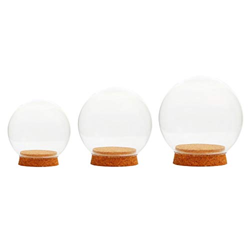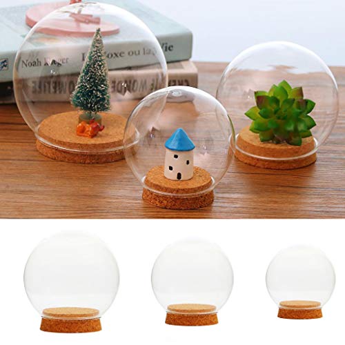B Blesiya 手作り 高品質 ガラス 球の形 カバー テラリウム 容器 装飾的 置物 木製コルク 3個