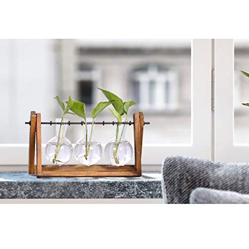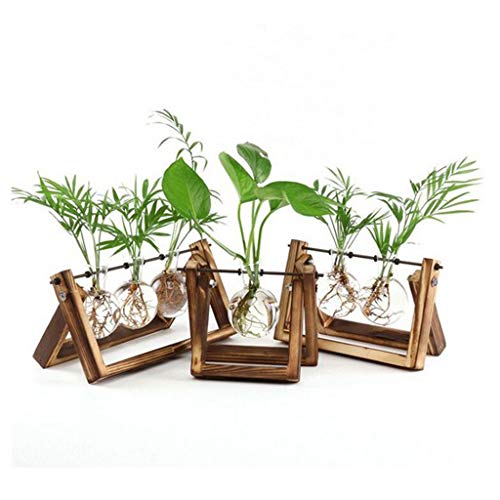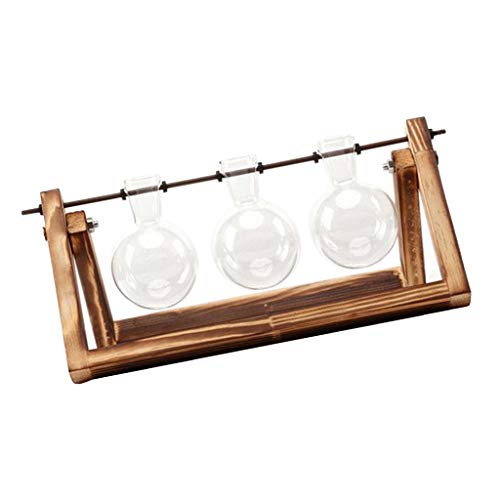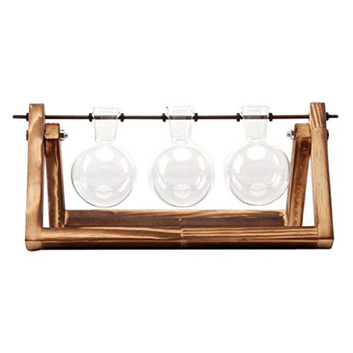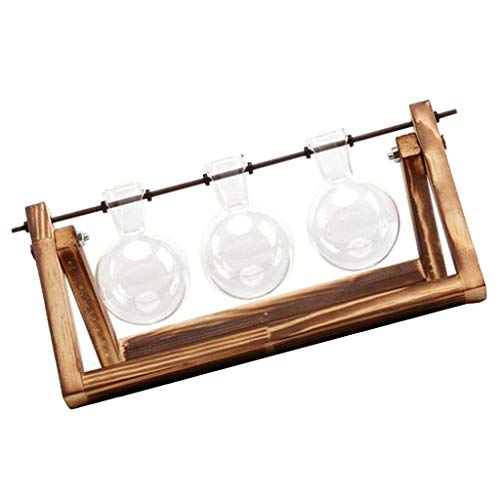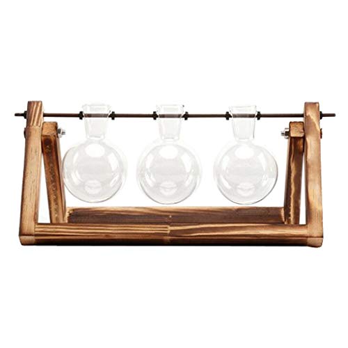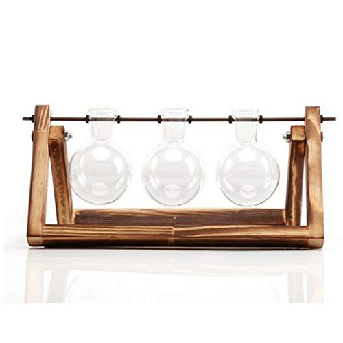 B Blesiya 木製スタンド付き ガラス容器 水耕栽培 植物鉢 フラスコ型 花瓶 1個/3個用 贈り物 - 3個用