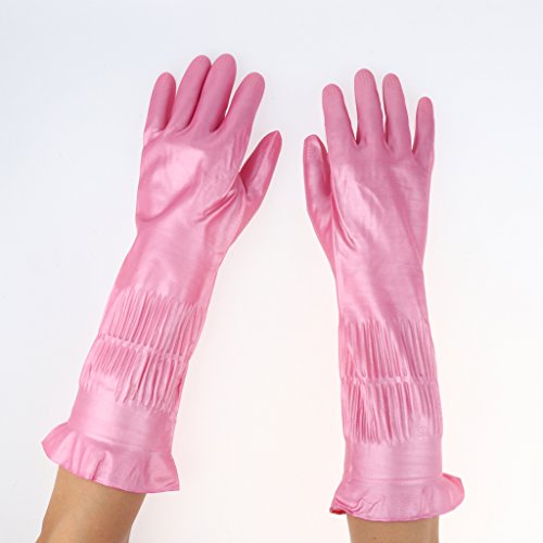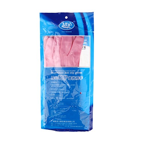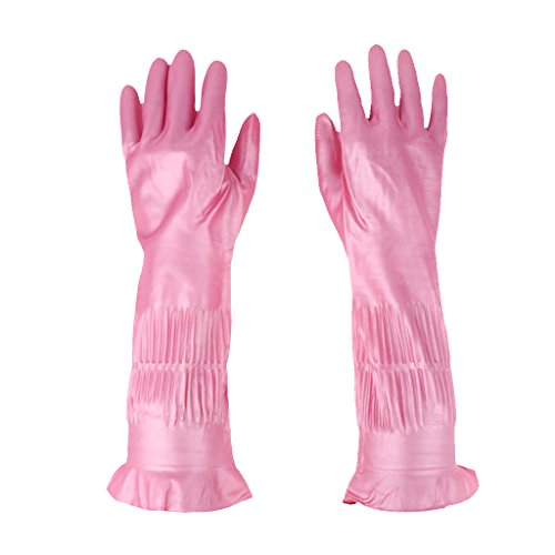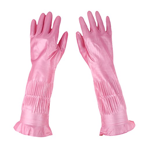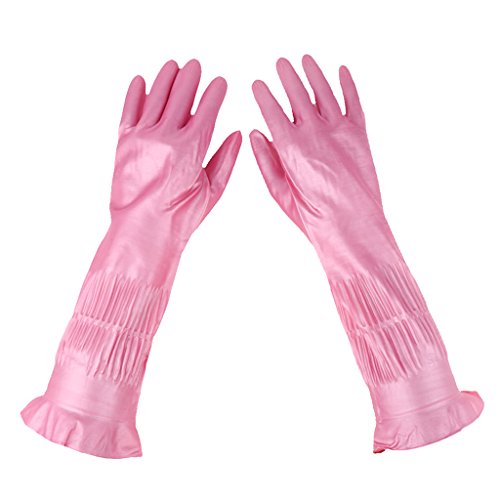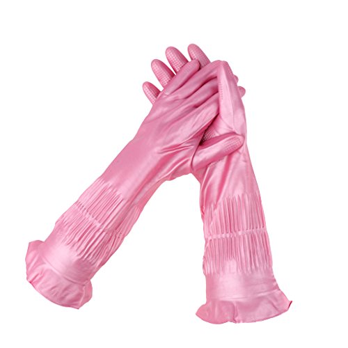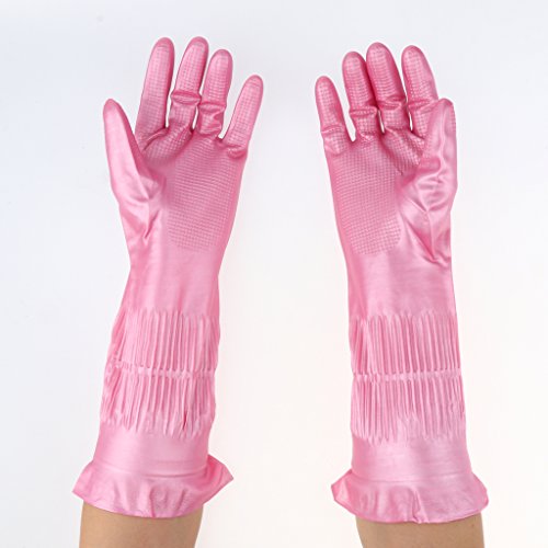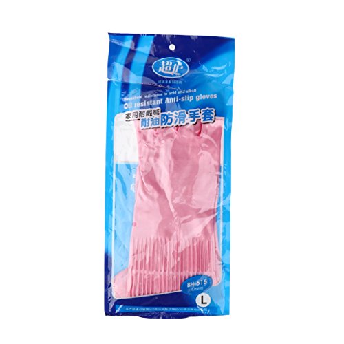 B Blesiya 天然ラテックス製手袋 人間工学 クリーニング 多場合適用 ピンク 39cm 全3サイズ - L