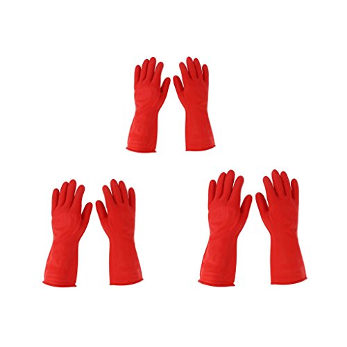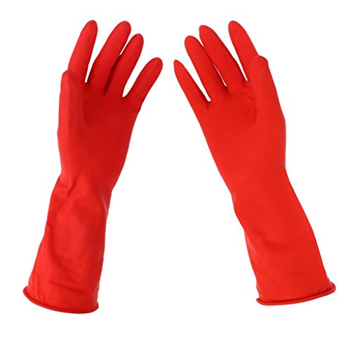 B Blesiya ラテックス手袋 赤 安全保護 台所 クリーニング 人間工学 滑り防止 全3サイズ - S