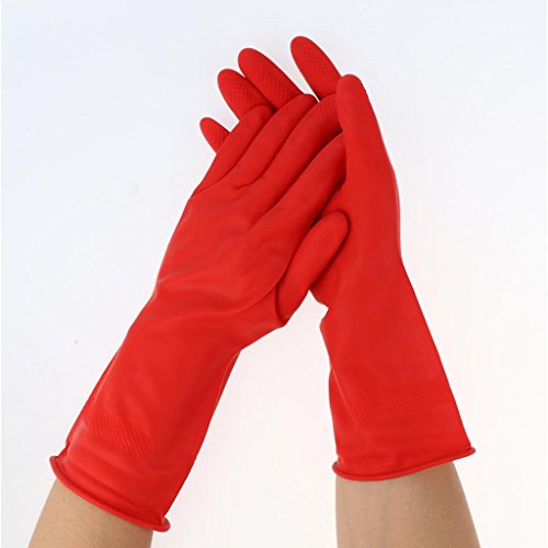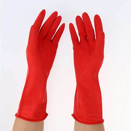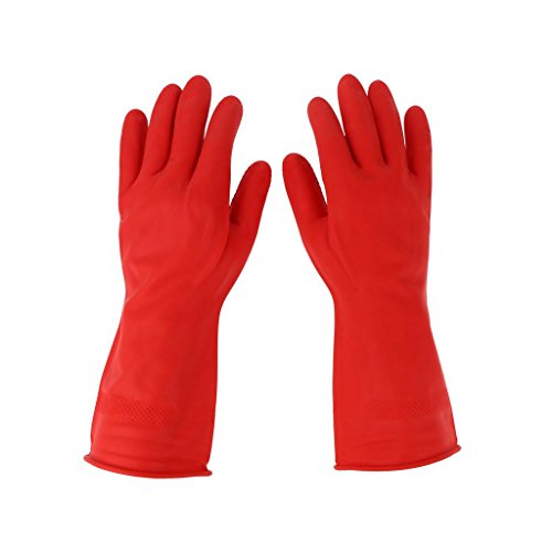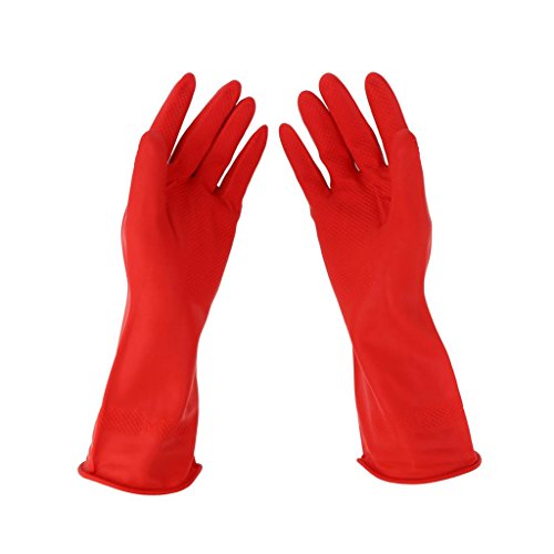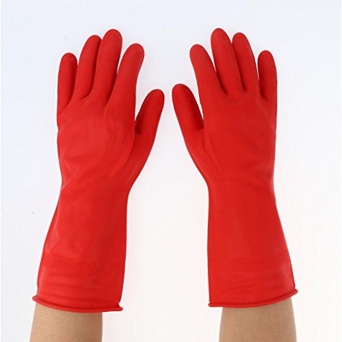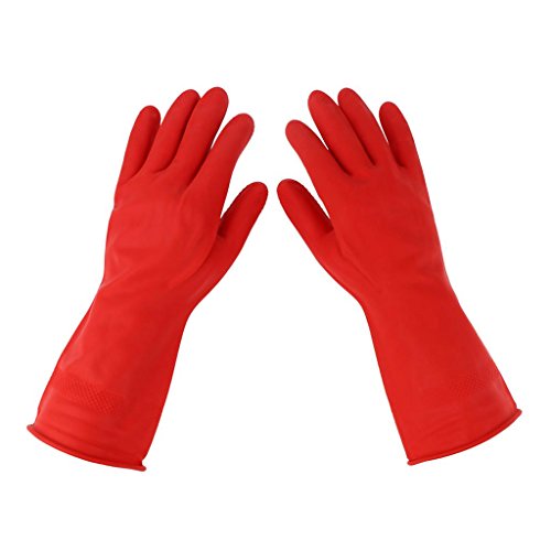 B Blesiya ラテックス手袋 赤 安全保護 台所 クリーニング 人間工学 滑り防止 全3サイズ - M