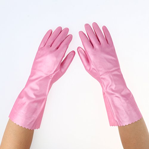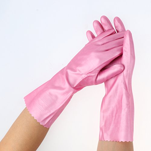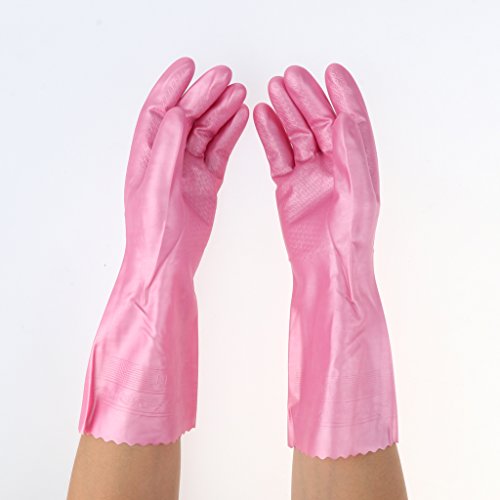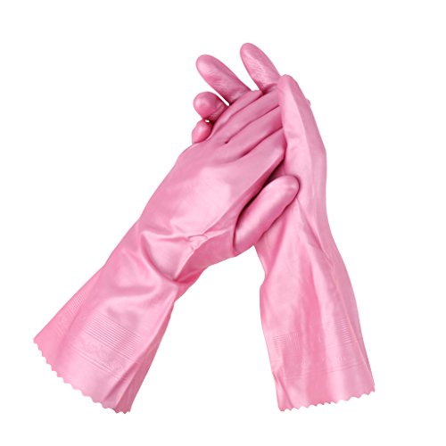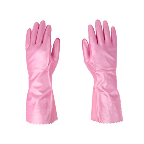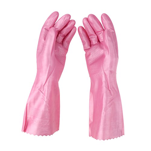 B Blesiya ラテックス手袋 ピンク 安全保護 キッチン クリーニング 人間工学 滑り防止 30cm 全3サイズ - M