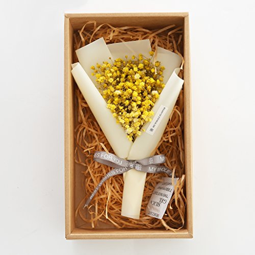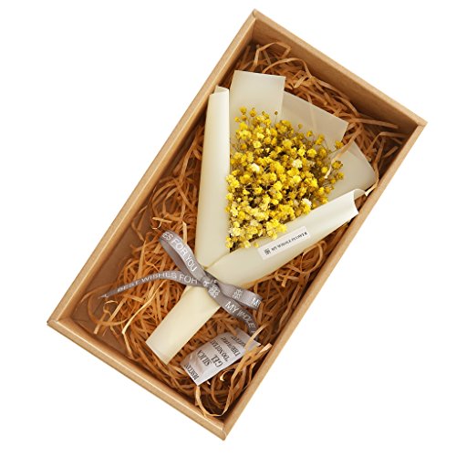 B Blesiya 6色選択 美しい 満天星 乾燥花 花束 永遠の花 母の日 恋人 ギフト花 ギフトボックス付き - 黄