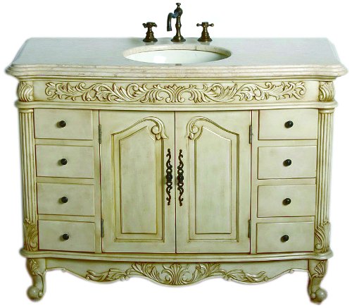 ダーラムはB & I直輸入シングルシンク洗面化粧台のかかる従来のキャビネットホワイトウォッシュ仕上げとクリームが特徴marfil大理石トップ1インチの取り付けを止めます。トップは組み立てを1つの標準8インチスプレッド蛇口です。バニティが設定されていることを非常に詳細設計、2つのドアの後ろ1つのシェルフがドアのストレージを提供しています。8つの機能があると、felt-linedの引き出しは、両メタルローラー調整することもできます。このダラムには、ビスク磁器シンク。蛇口は含まれていません。