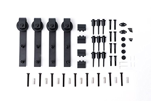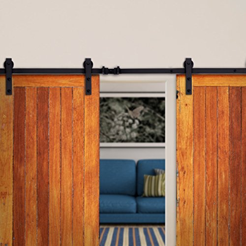 Good Life 12 ft slidingバーンドアハードウェアトラックシステムキットダブル木製ドアスライド式内部DIY壁マウントガイドセットダークコーヒーアンティークスタイルhmi067