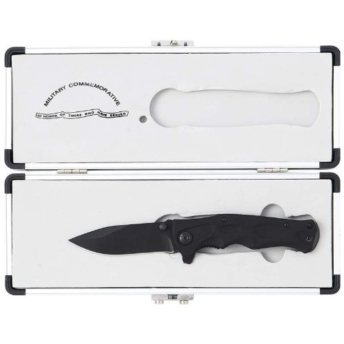 記念ミリタリーナイフ、説明:スタイリッシュなこのナイフは後にパターンを使用する方が、米国の軍現役武官であるということを意味します。アルミケースの風格あるストレージとして機能とディスプレイピース。機能ゴム引きグリップハンドルです。ホーニングなし刃クリップ、thumbstud、アルミケースに。ナイフは4 – 1 / 2 "閉じている状態で、8 "開いていることを確認してください。読み取りが刃で人も、名誉のごちそうしたのですが。限定生涯保証が付いています。ギフト箱詰めされております。