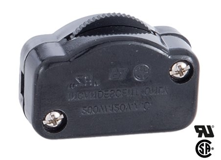 18/2SPT-2ランプコード用ブラック ハイ・ロー直列調光スイッチ。
